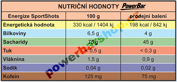 - PowerBar Energize SportShots - cola+kofein 60 g