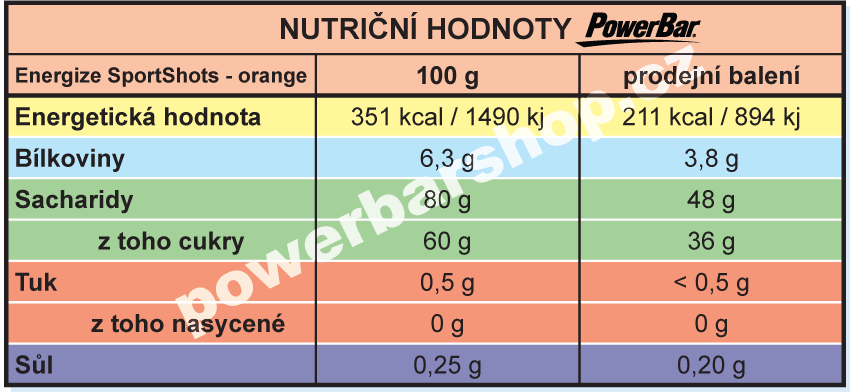 PowerBar Energize SportShots - pomerančskladem53,00 Kč/ ks47,32 Kč bez DPH